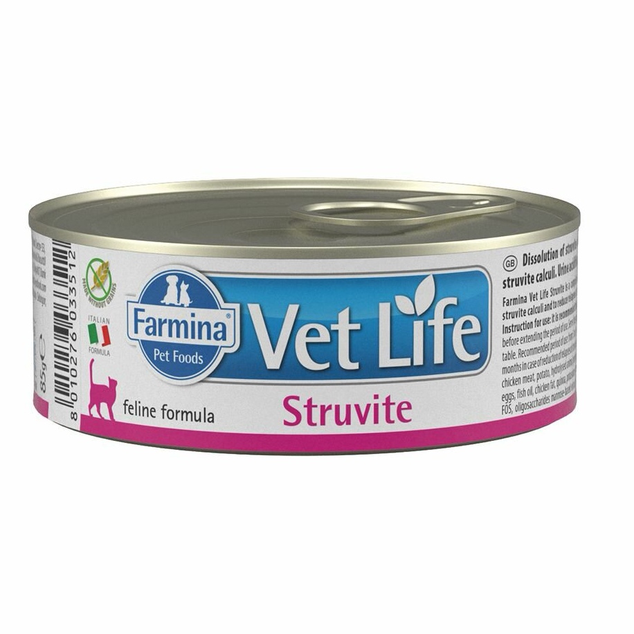 Farmina Vet Life Struvite – полнорационный диетический влажный корм для кошек для растворения струвитных камней, при заболеваниях нижних мочевых путей у кошек и снижения рецидивов струвитного уролитиаза.